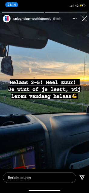 De herendubbel van Bas en Maarten ging supergoed. Hun tegenstanders waren gewoon beter. Ook dat kan. 3-3. Tja, weer alles op de mix dus. Kaarten opnieuw geschud, want ze speelden in een andere samenstelling. Willem met Sarah en Maarten met Loes. En dat begon goed. Willem en Sarah moesten even wennen aan die 'lange' aan het net, maar wonnen de 2e set. Super tiebreak. Het was zó close, maar ze verloren deze met 8-10. Maarten en Loes knalden er meteen (met beleid) op los. 1e set binnen. Na maar liefst een paar matchpoints in de 2e set, die ze niet konden verzilveren, werd het ook hier een supertiebreak. En ook die ging verloren. Eindstand weer 3-5.