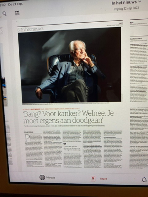 Vorige week zaterdag stond 'onze eigen' Piet Borst in het NRC. Voor wie Piet Borst niet kent: Piet Borst, emeritus hoogleraar klinische biochemie en moleculaire biologie aan de Universiteit van Amsterdam, ontvangt de Lasker Award. Die prestigieuze Amerikaanse prijs, ook wel de 'Amerikaanse Nobelprijs' genoemd, is bestemd voor mensen die een belangrijke bijdrage hebben geleverd aan medische wetenschap en de volksgezondheid. De jury kent de prijs toe aan Borst (89) "voor zijn uitzonderlijke 50-jarige carrière van wetenschappelijke ontdekkingen, mentorschap en leiderschap". Wij zijn super trots op Piet!