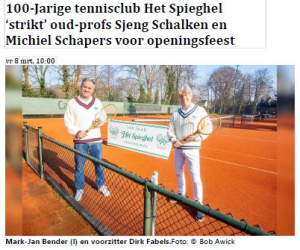 Op zondag 30 maart trapten we gezamenlijk het nieuwe tennisseizoen af tijdens de Openingsborrel. Het evenement werd extra bijzonder door de aanwezigheid van Richard Krajicek, die uit handen van voorzitter Dirk Fabels de Lifetime Membership Award in ontvangst mocht nemen. Een ander hoogtepunt van de borrel was de uitreiking van het nieuwe Spieghelbeeld, dit keer met het thema "Après"